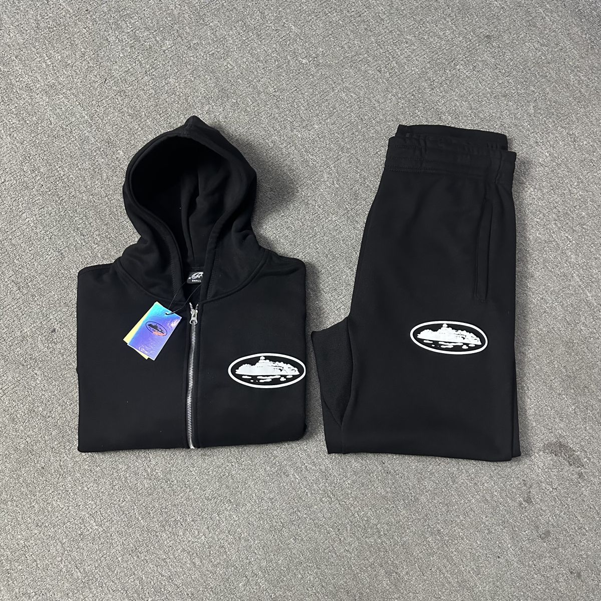 Corteiz Puff Print Zip Up Tracksuit Black